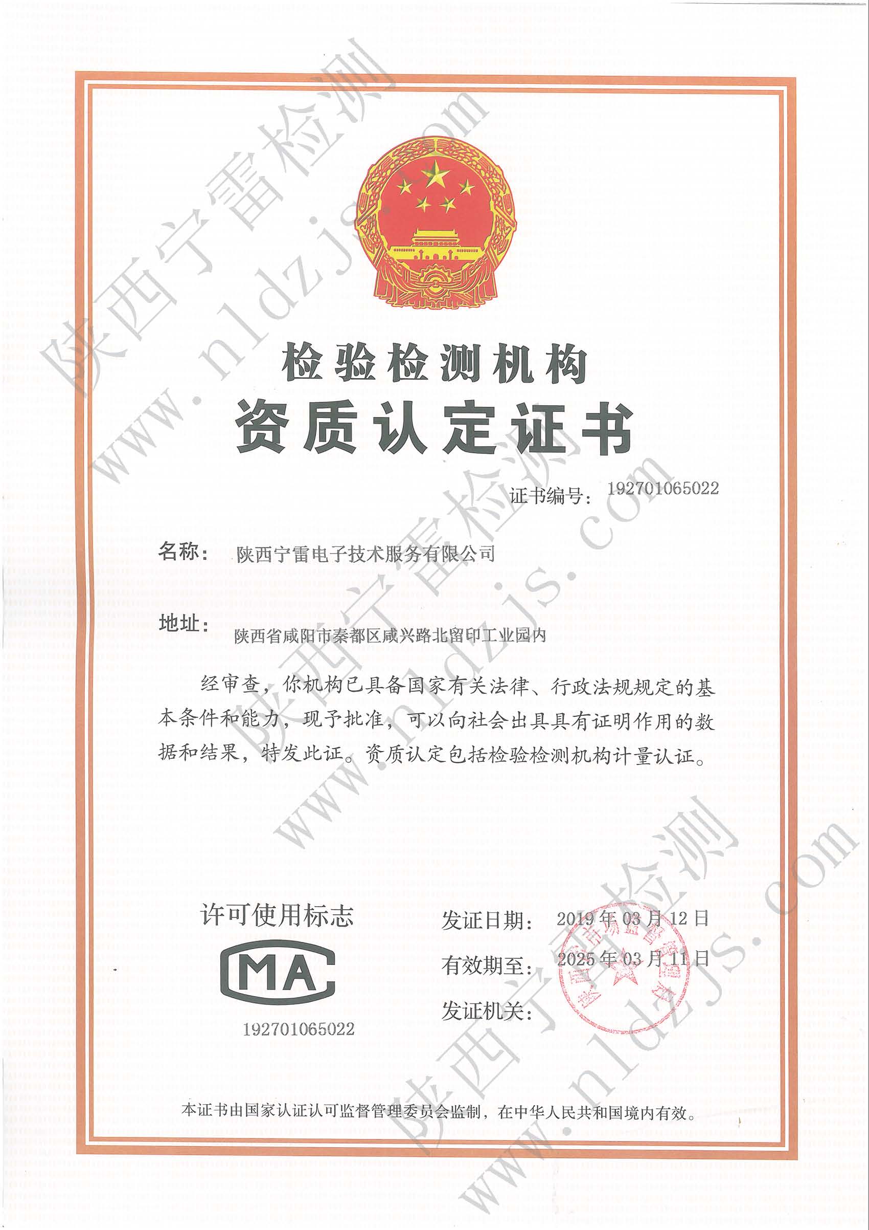 陜西寧雷檢測(cè)喜獲國(guó)家CMA證書