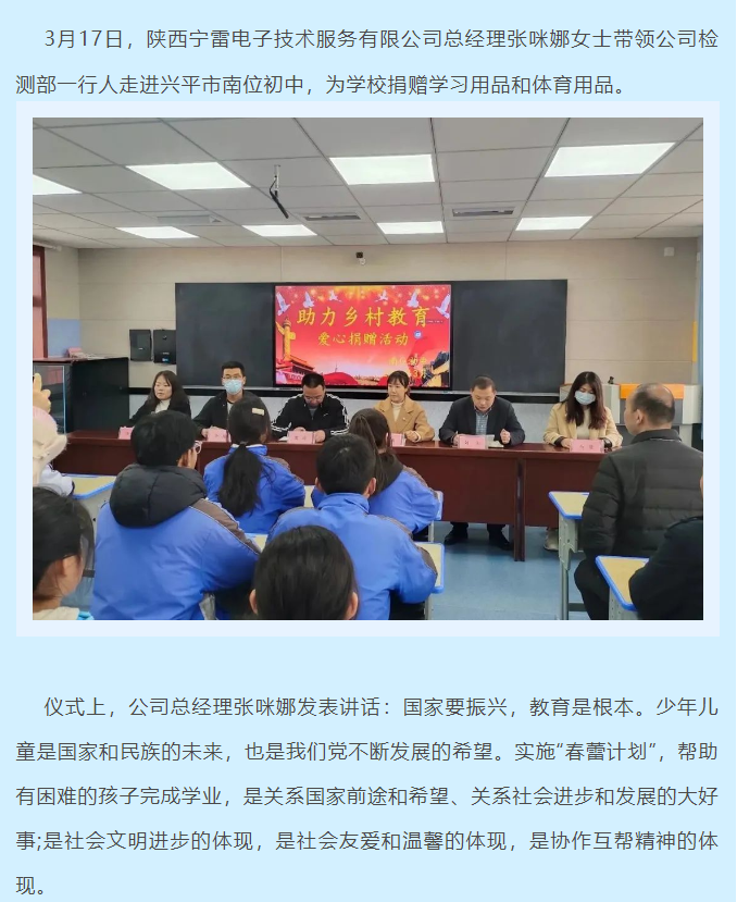 陜西寧雷檢測舉辦“關(guān)愛學(xué)生成長,助力鄉(xiāng)村教育”公益活動